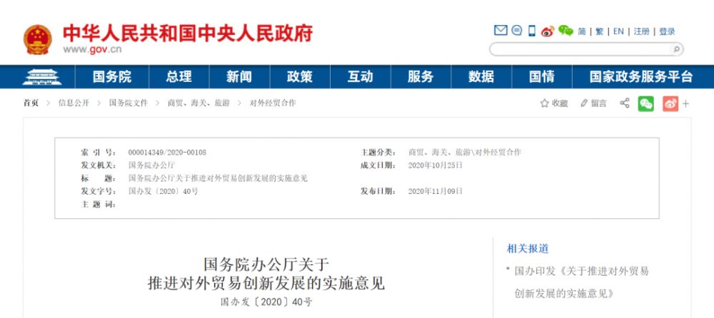 政策 | 国务院办公厅关于推进对外贸易创新发展的实施意见