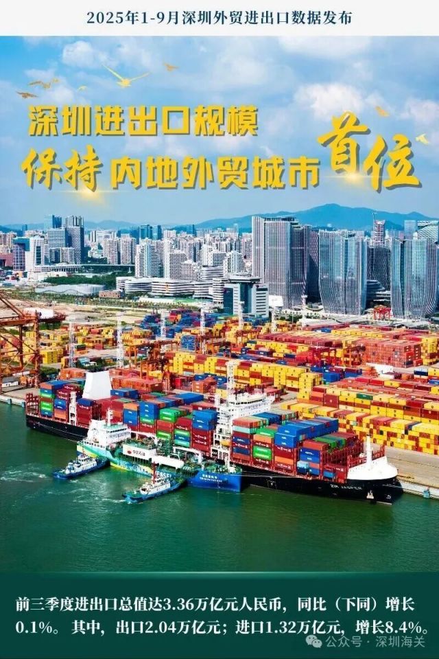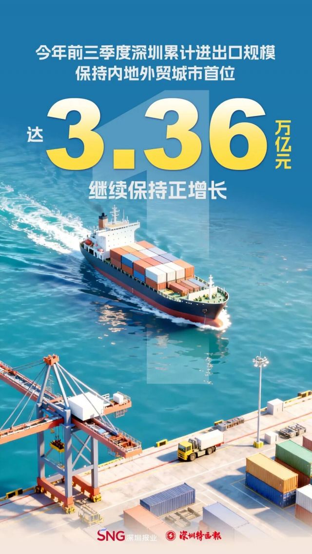内地外贸城市首位!今年前三季度,深圳进出口达3.36万亿元